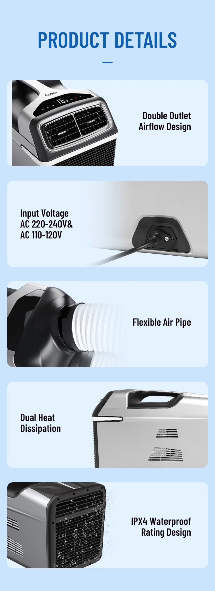 220V 240V Portable Air Conditioner 4400Btu Cooling Capacity New DC Compressor Air Cooler for Cars RVs Outdoor Air Conditioner