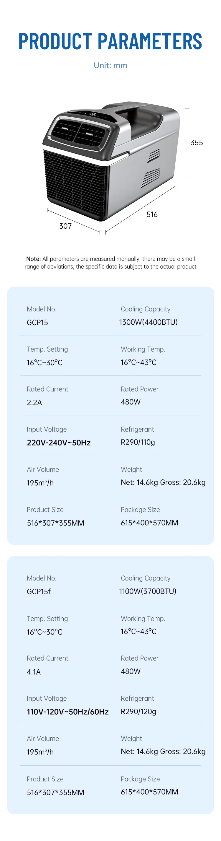 Cooling Capacity: 1300W/4400BTU