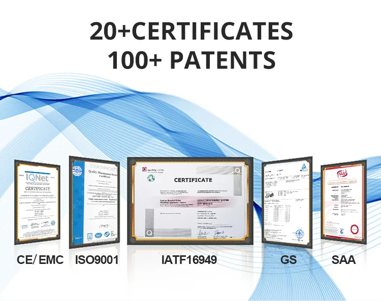 Ans: We have more than 100 certificates and 20 patents such as s UL, ETL, SAA, GS, CE, CB and so on. And our products also have complied IATF16949, ISO9001, ISO14001, ISO45001 & ISO10012 Management Systems.